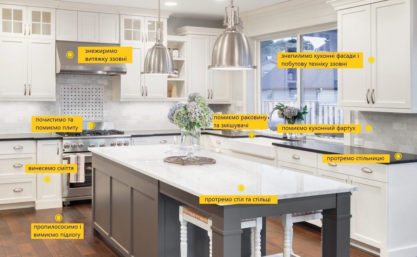 • Миття внутрішніх поверхонь кухонного гарнітура.